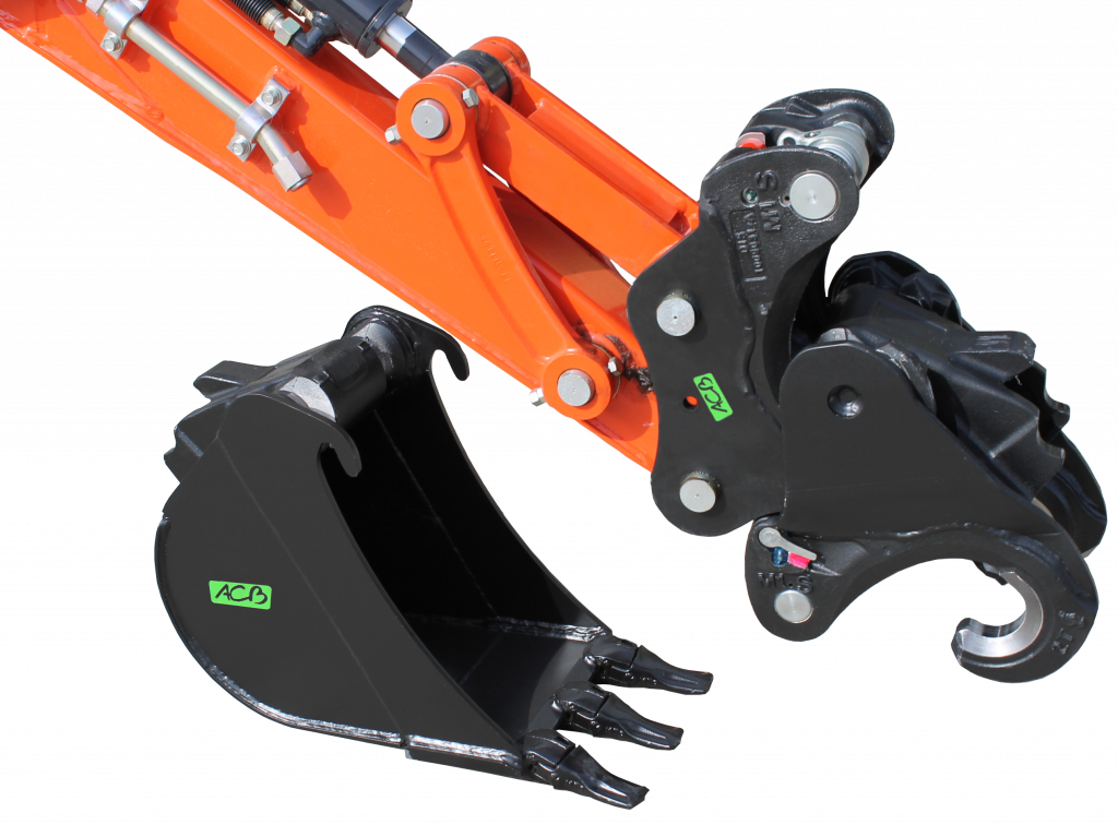 - Le kit réversible, quant à lui, se décroche soit par la clé de déverrouillage s’il est monté sur un coupleur classique mécanique, soit par pression sur le boîtier de commande dans le cas d’un coupleur classique hydraulique