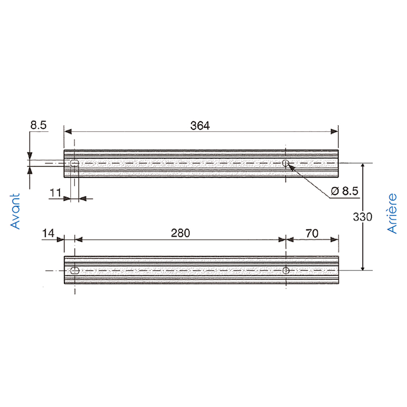 Réglage longitudinal des glissières 210 mm