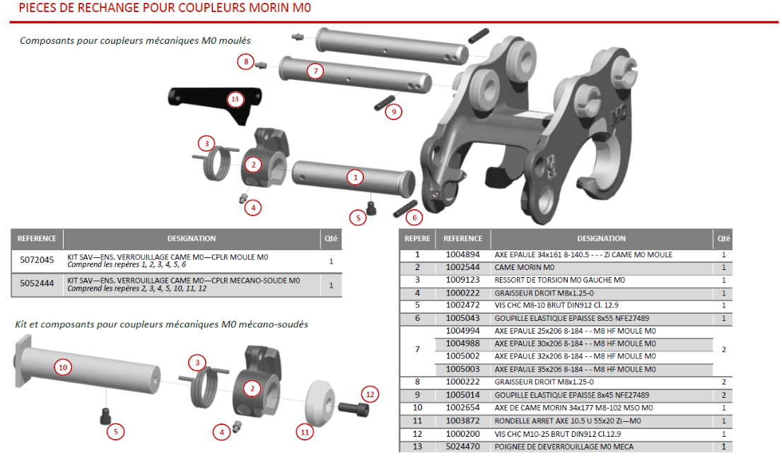 Kit entretien coupleur Morin Retromatic Module 0 qui permet la remise en état de votre attache rapide ACB Morin Retromatic Module 0, coupleur des godets de la mini pelle.