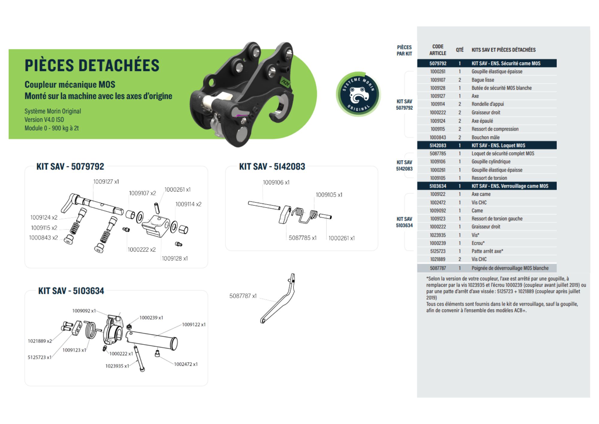Cette référence comprend le kit SAV 5079792, 5142083 et 5103634.