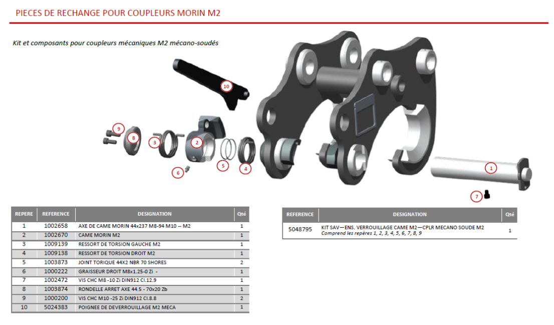 Kit entretien coupleur Morin Retromatic Module 2 qui permet la remise en état de votre attache rapide ACB Morin Retromatic Module 2, coupleur des godets de la mini pelle.