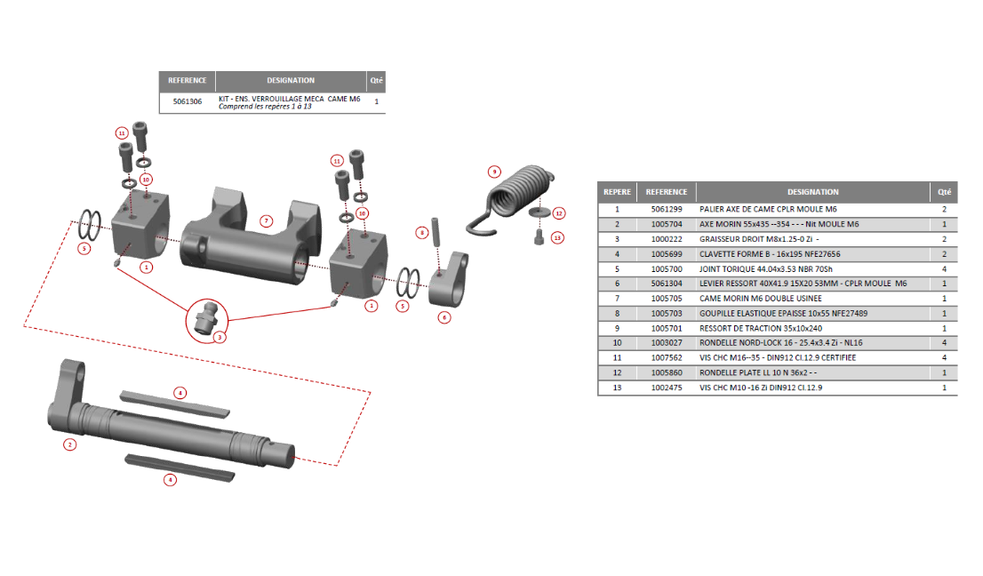 Kit entretien coupleur Morin Retromatic Module 6 qui permet la remise en état de votre attache rapide ACB Morin Retromatic Module 6, coupleur des godets de la mini pelle.