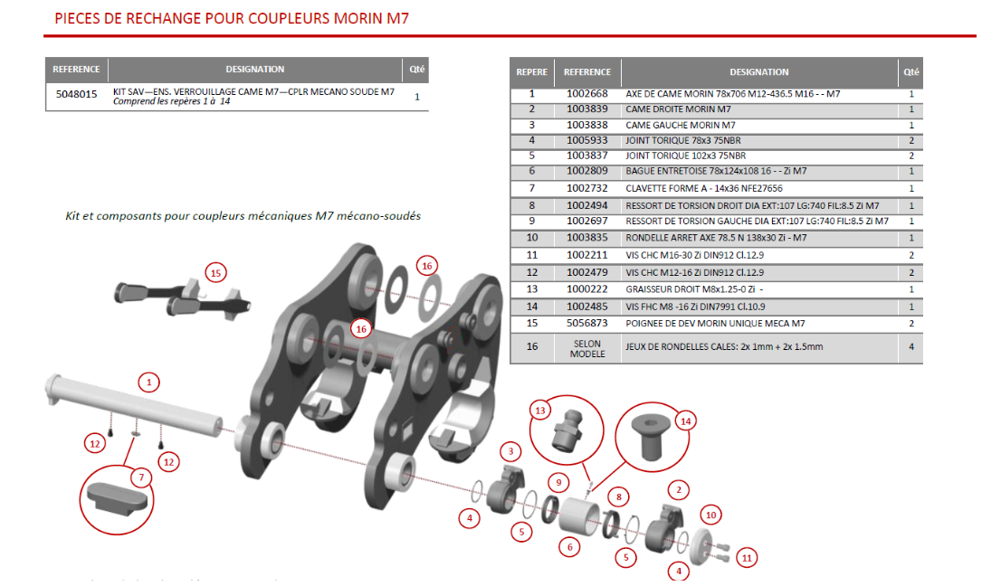 Kit entretien coupleur Morin Retromatic Module 7 qui permet la remise en état de votre attache rapide ACB Morin Retromatic Module 7, coupleur des godets de la mini pelle.