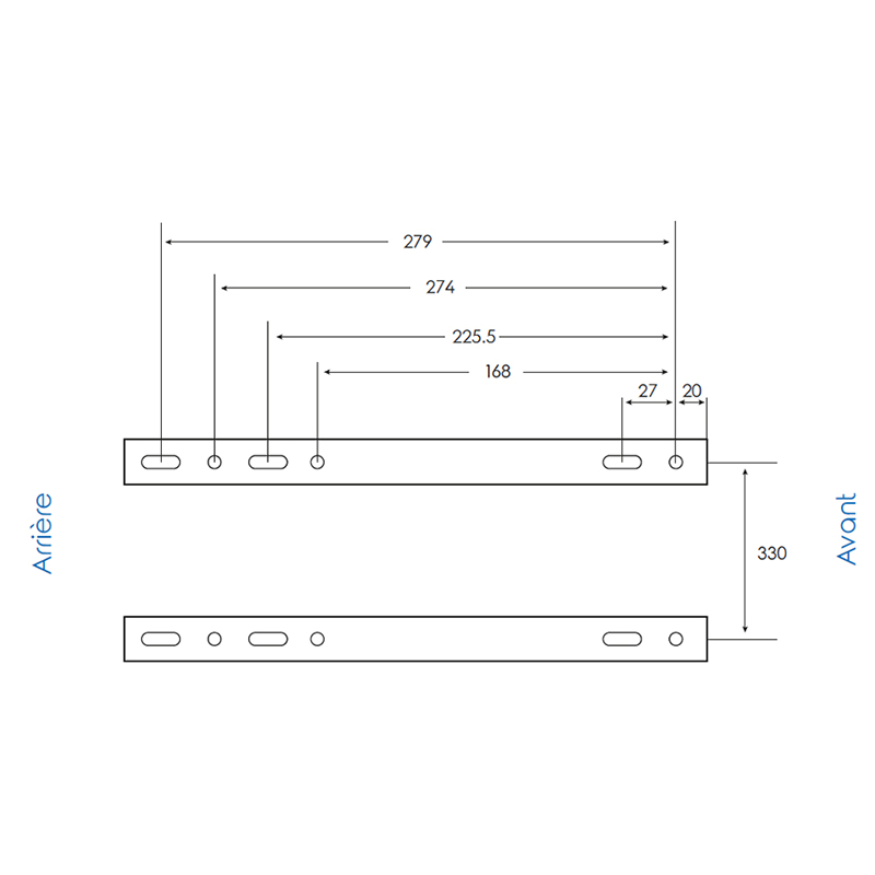 Réglage longitudinal des glissières 150 mm