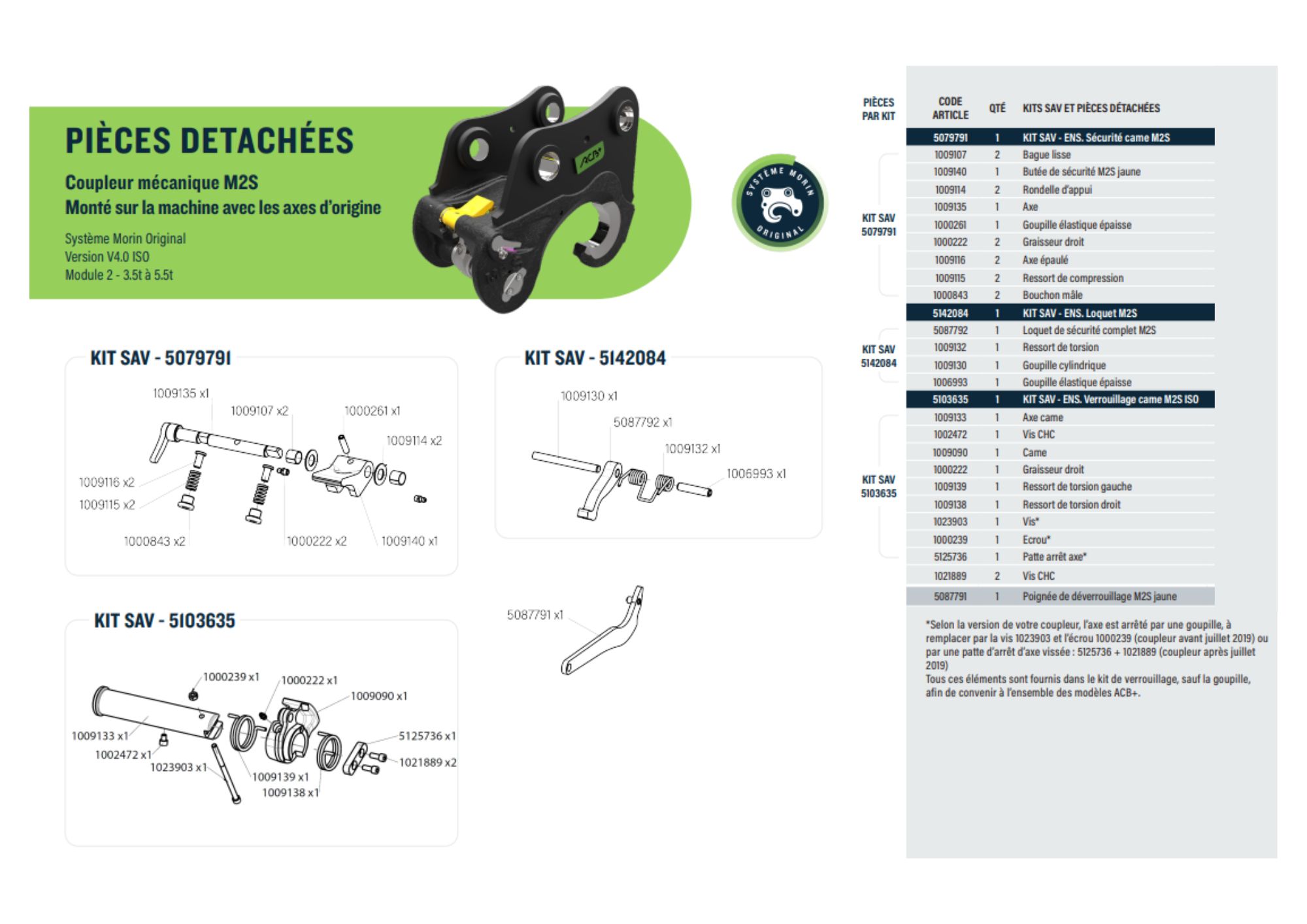 Cette référence comprend le kit SAV 5079791, 5142084 et 5103635.