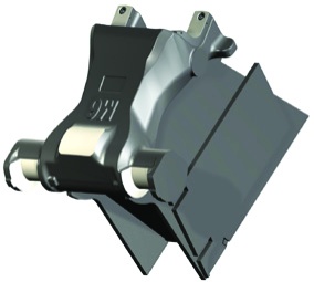 Reprise par caisson central à recouper au profil du godet. Pas de limitation d'accrochage.