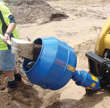 Disponible en 140 et 180 litres, la bétonnière Auger Torque se fixe rapidement et facilement à nos tarières.