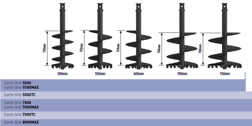 Les vrilles S5 Augertorque ont un diametre de 150mm jusqu'à 1.2M, il y a la possibilité de rajouter des rallonges de 1M à 2M, ou des rallonges télescopiques. (Pour les vrilles d'un mètre de diamètre et plus, veuillez contacter notre équipe au 04 67 58 38 57)