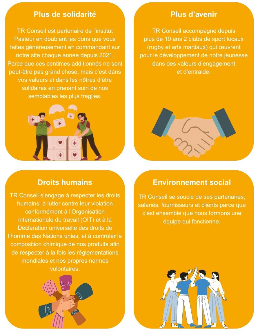 Pour nos fournisseurs : Nous pratiquons des relations saines et toujours éthiques afin de poursuivre des partenariats durables, loyaux et fiables.